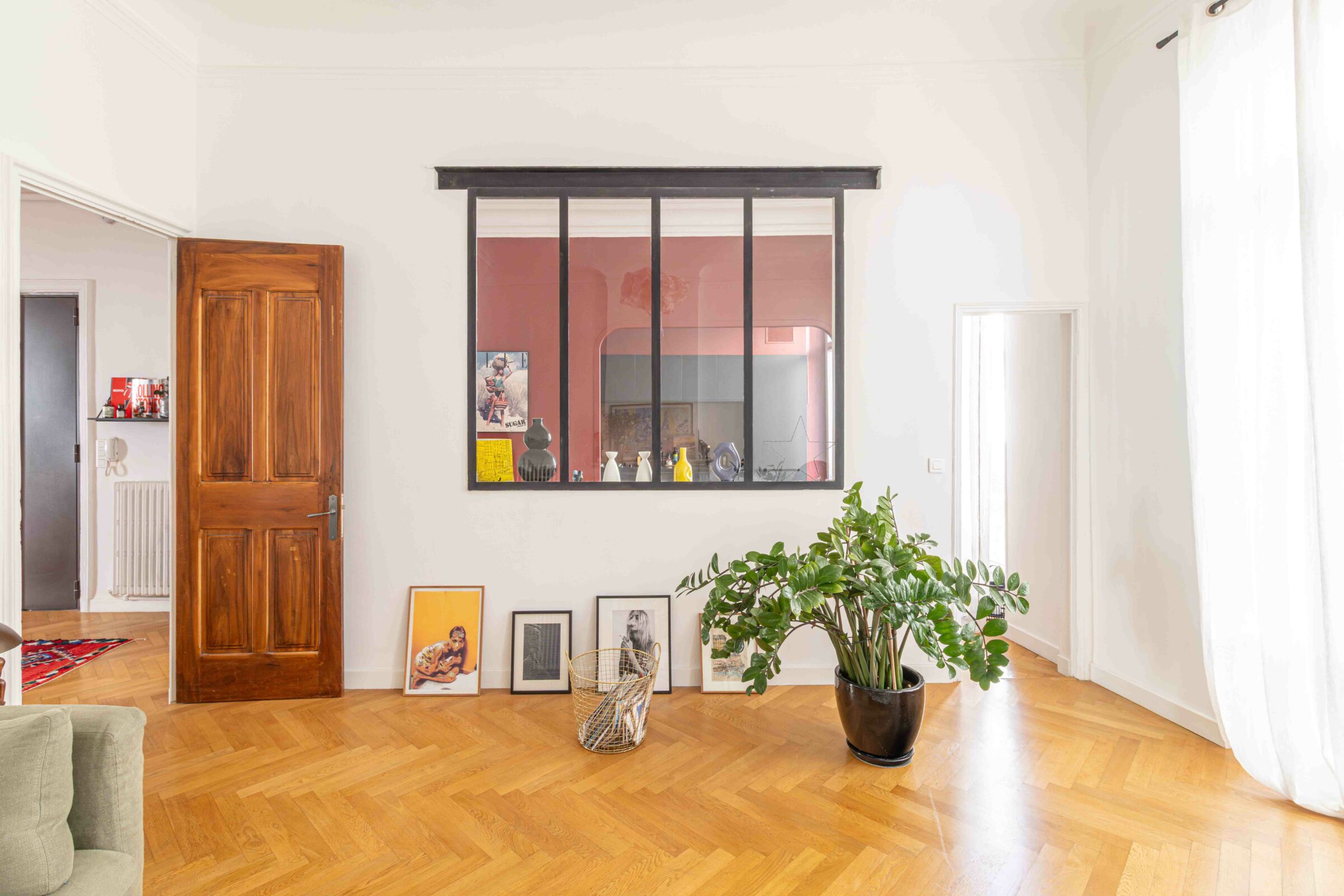 Situé à deux pas du boulevard Notre-Dame, cet appartement de 130 m² séduit par son vaste espace de vie de 47 m², baigné de lumière et articulé autour d’une verrière atelier du plus bel effet. Les parquets en chevrons, les cheminées d’époque et la belle hauteur sous plafond rappellent le cachet de l’ancien, sublimé par une rénovation élégante. Côté nuit, deux grandes chambres, modulables selon les besoins, offrent confort et quiétude. S’ajoutent une chambre de service, une cave et un emplacement idéal au cœur d’un quartier recherché de Marseille.