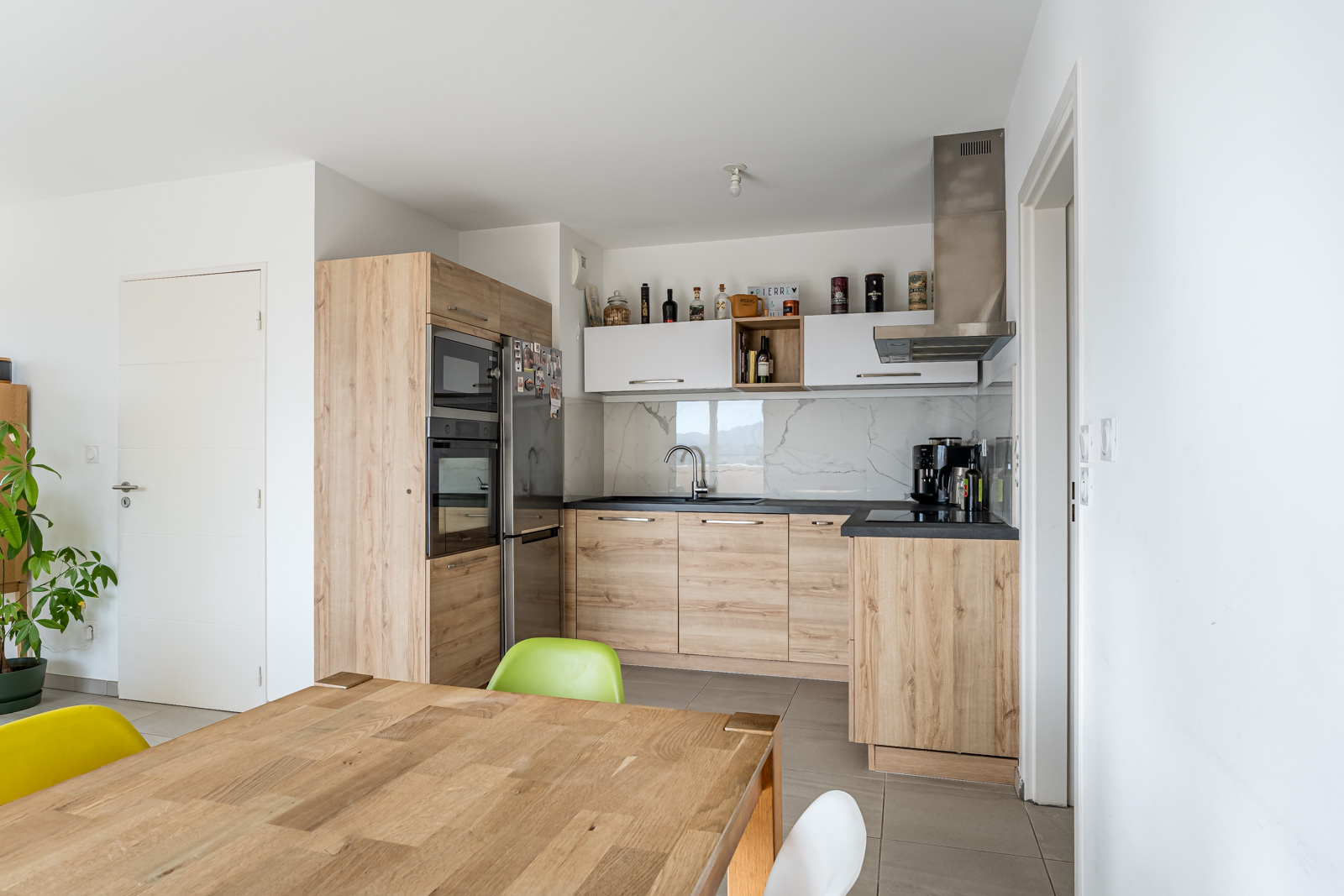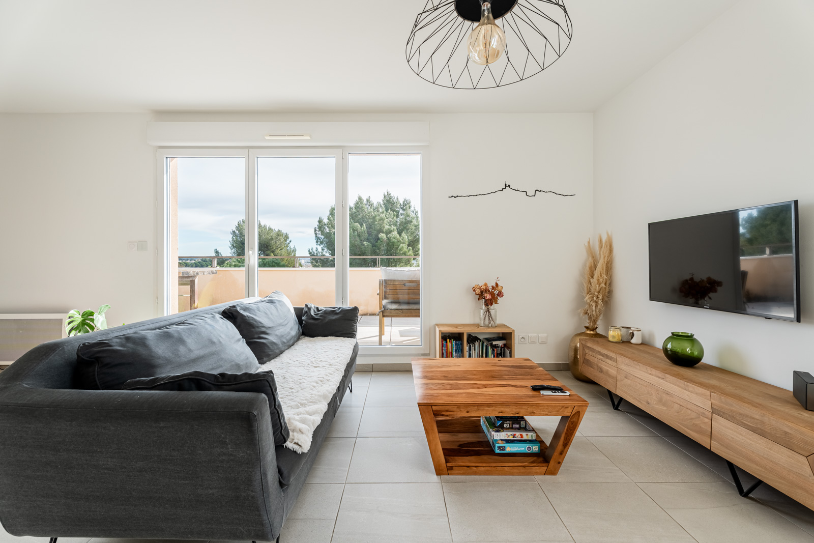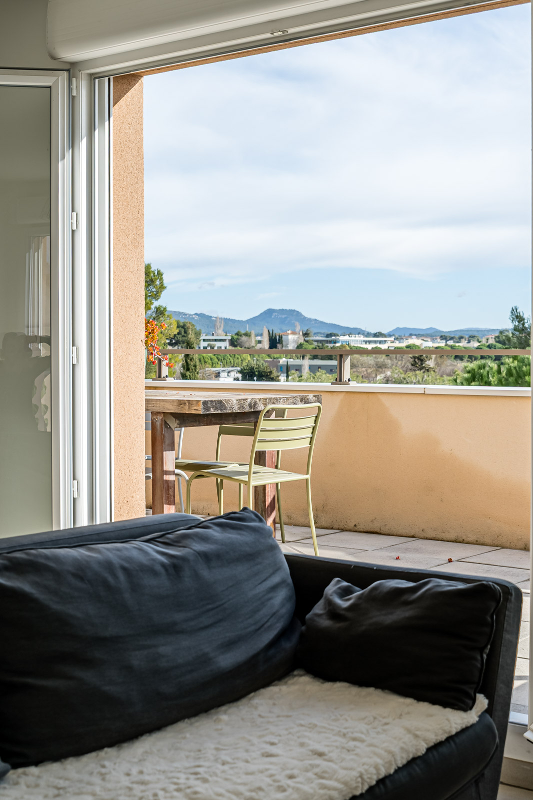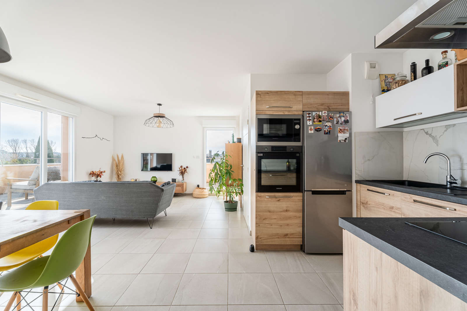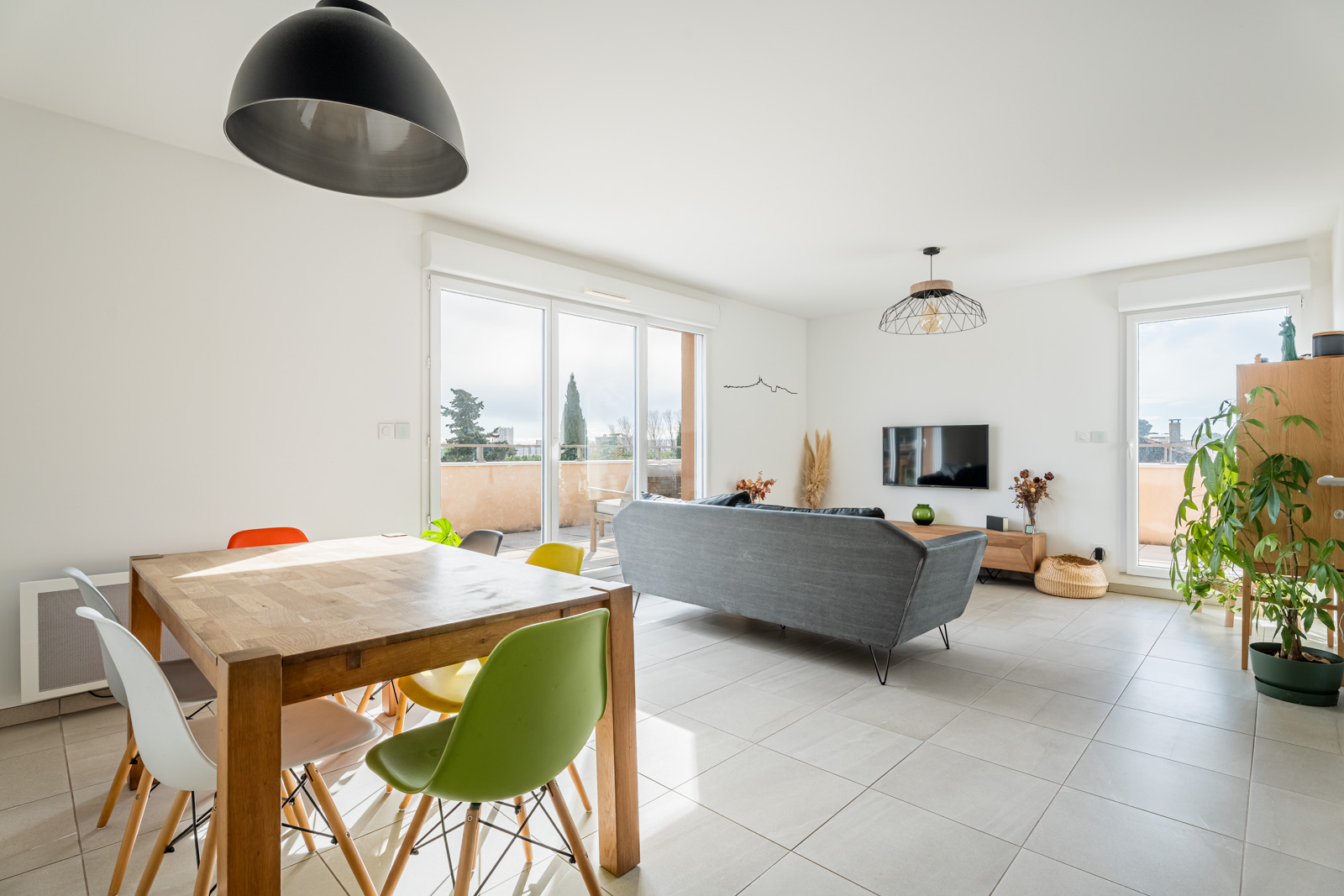 Dès l’entrée, l’appartement séduit par ses volumes et sa belle pièce de vie baignée de lumière, pensée comme un véritable espace de convivialité. Le séjour s’ouvre naturellement sur une grande terrasse, véritable prolongement de l’intérieur, offrant une vue dégagée et un espace idéal pour profiter des beaux jours, partager des repas en extérieur ou simplement se détendre.