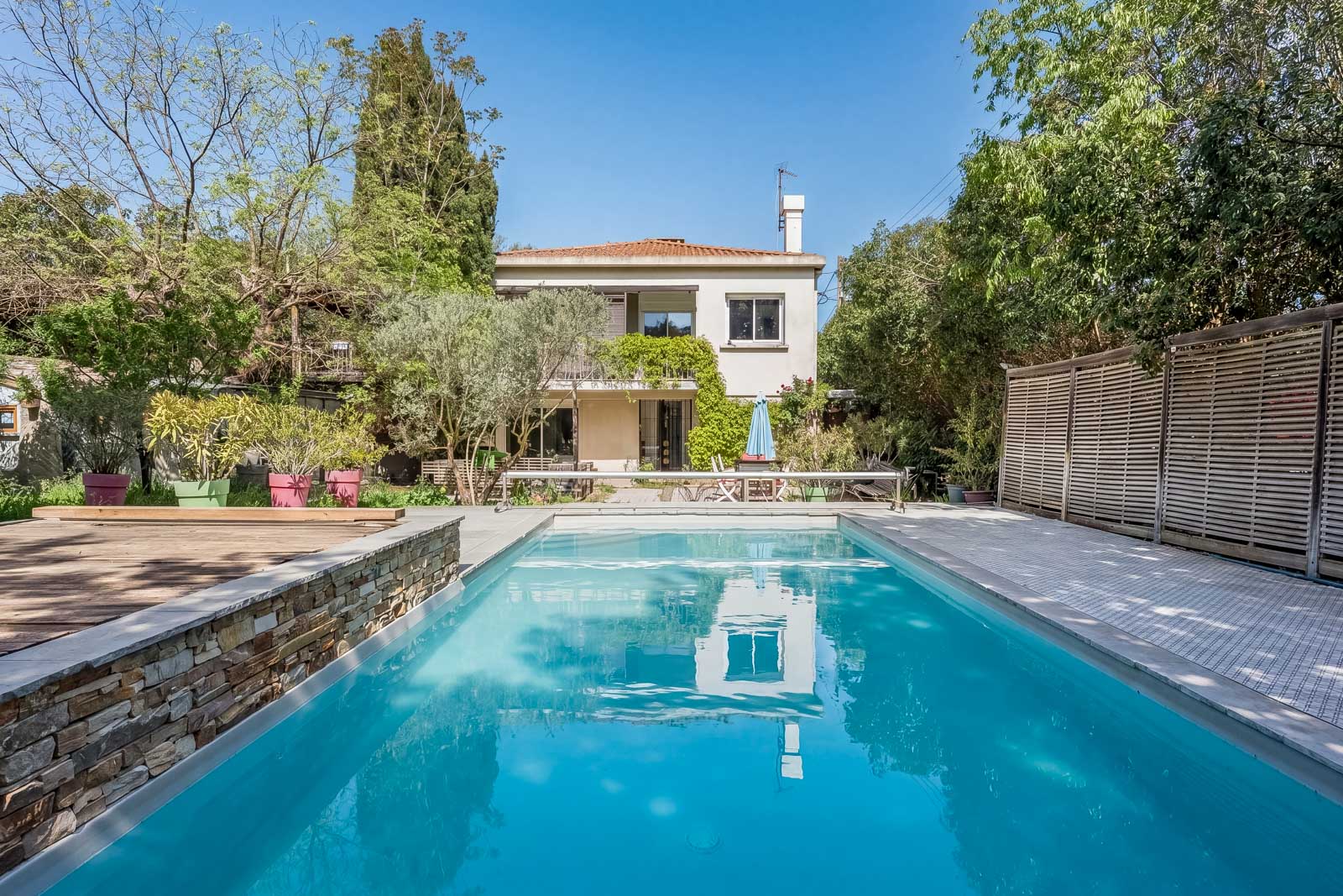 Située dans le quartier recherché du Cabot, cette maison sur un terrain de 800 m² offre un cadre de vie privilégié avec piscine, terrasse et jardin arboré. Elle se compose de trois chambres en rez-de-chaussée, dont une suite parentale, ainsi que d’un espace bureau. À l’étage, un vaste séjour avec cuisine ouverte s’ouvre sur une terrasse dans les arbres et un balcon, complété par une seconde suite parentale de plus de 29 m². Un bien plein de charme, nécessitant un léger rafraîchissement, offrant un fort potentiel dans l’un des secteurs les plus prisés du 9ᵉ arrondissement.
