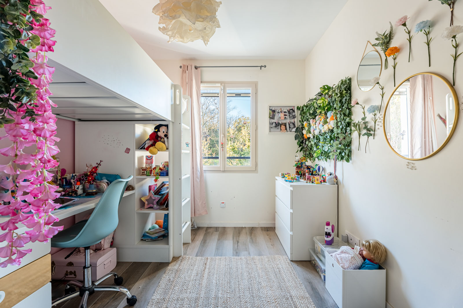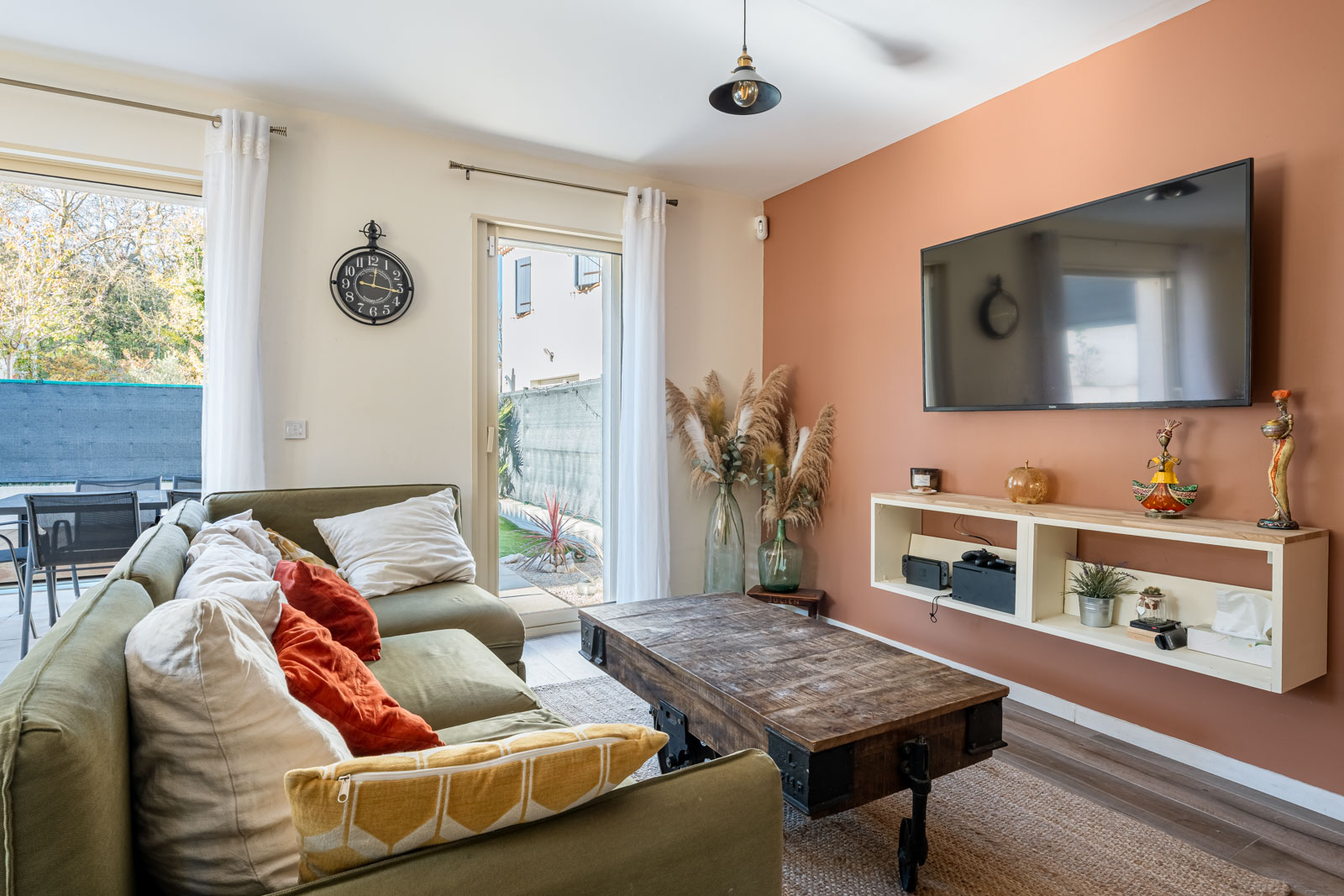 La pièce de vie, lumineuse grâce à ses larges ouvertures, s’ouvre sur un extérieur soigneusement aménagé : piscine, terrasse escamotable et espace détente, parfaits pour profiter des beaux jours en toute intimité.