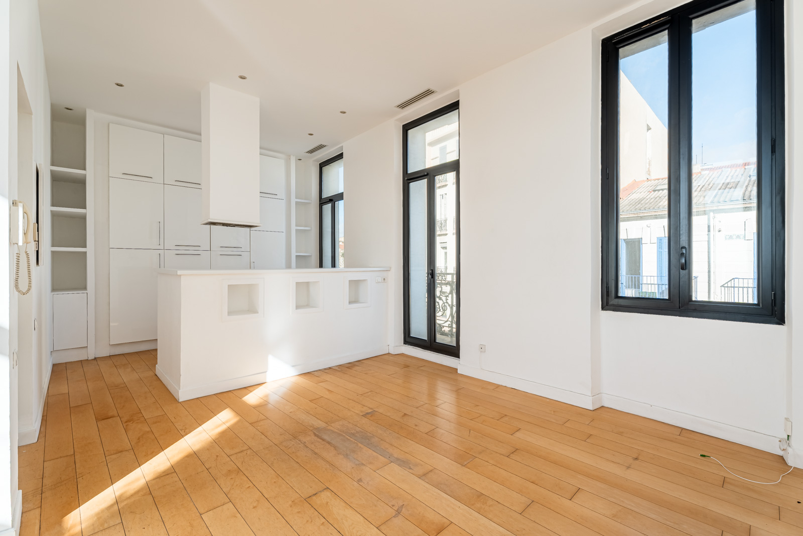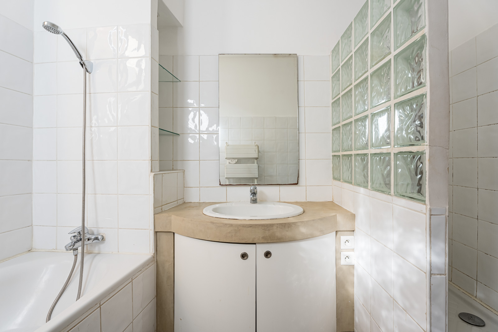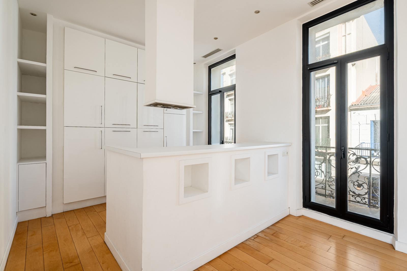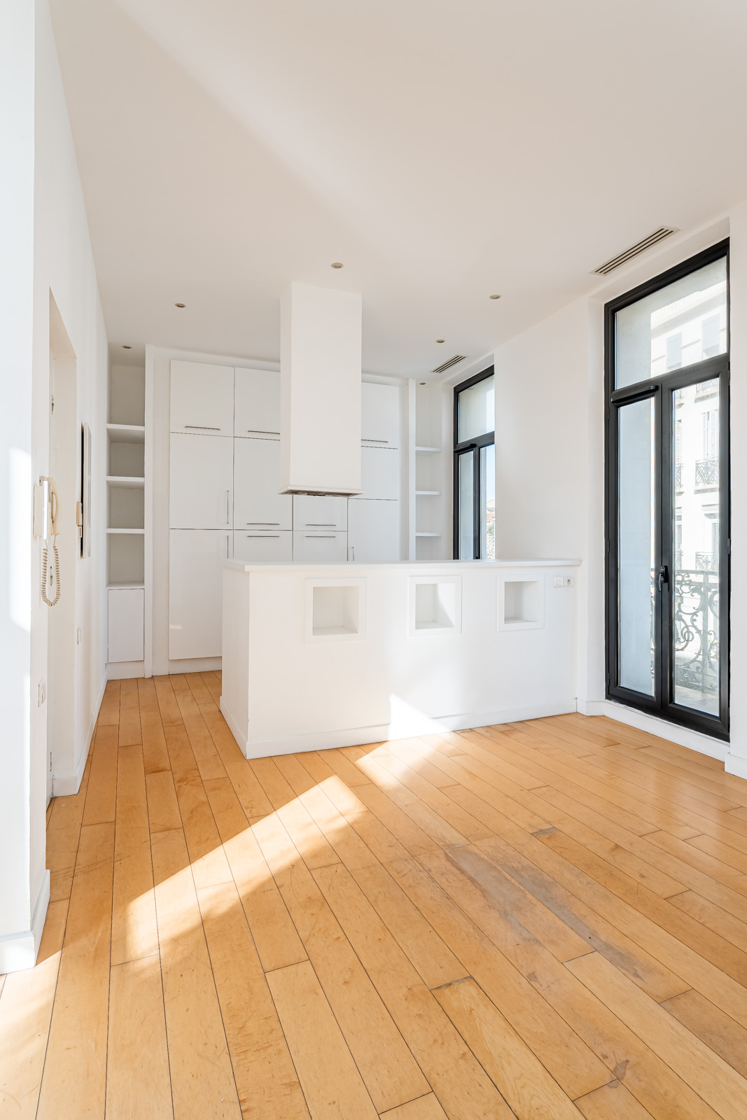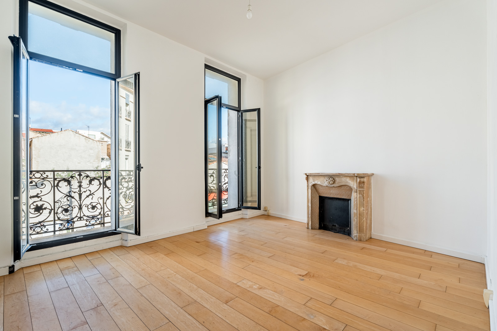 Les deux chambres, disposent d’un accès aux balcons côté rue. La cuisine et la salle de bain sont fonctionnelles, avec des travaux de rafraîchissement à prévoir, notamment au niveau des sols, laissant la possibilité de repenser l’appartement selon ses envies.