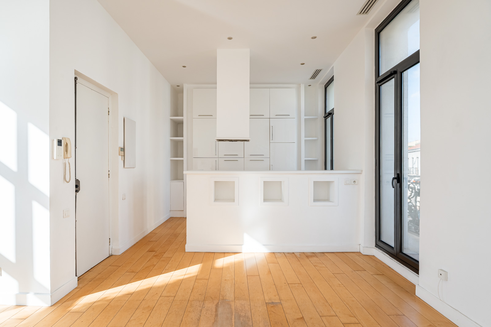 La pièce de vie, côté Corniche, bénéficie de trois grandes ouvertures en double vitrage et de deux balcons filants. Un espace lumineux et agréable, idéal pour profiter de l’environnement et de la vue.