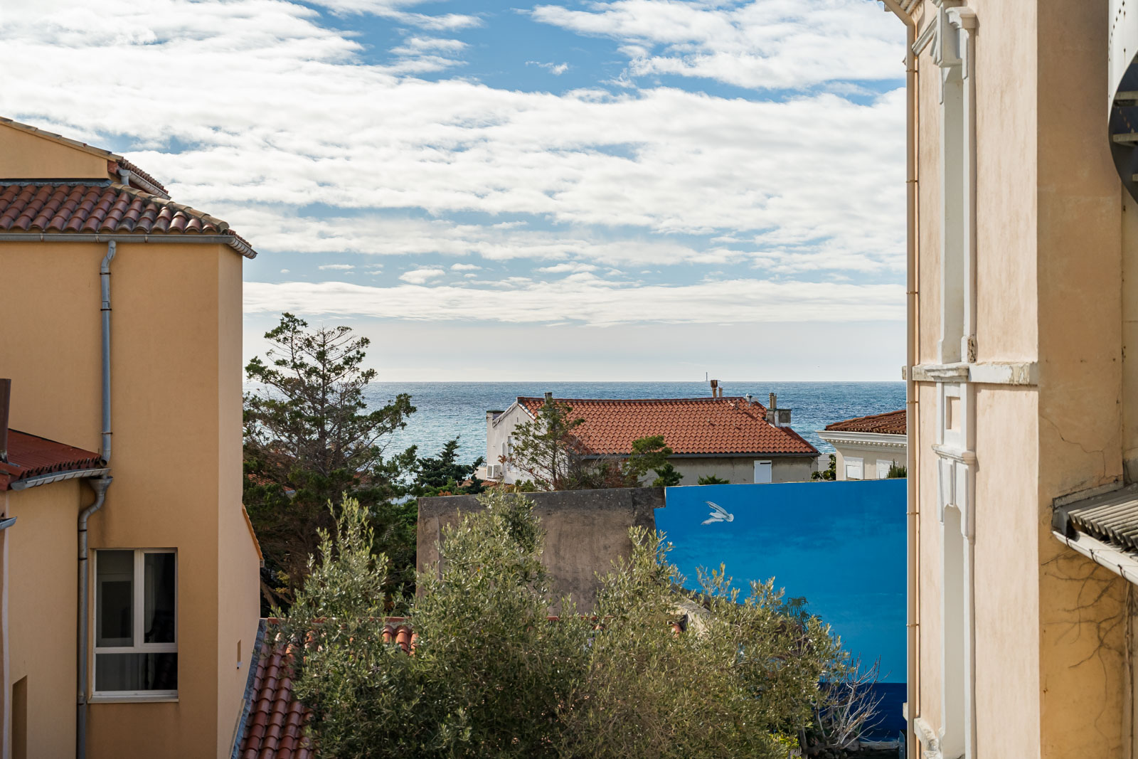 Côté Malmousque, le séjour profite également d’une vue mer dégagée exposée sud, grâce à une large ouverture apportant une belle luminosité tout au long de la journée.