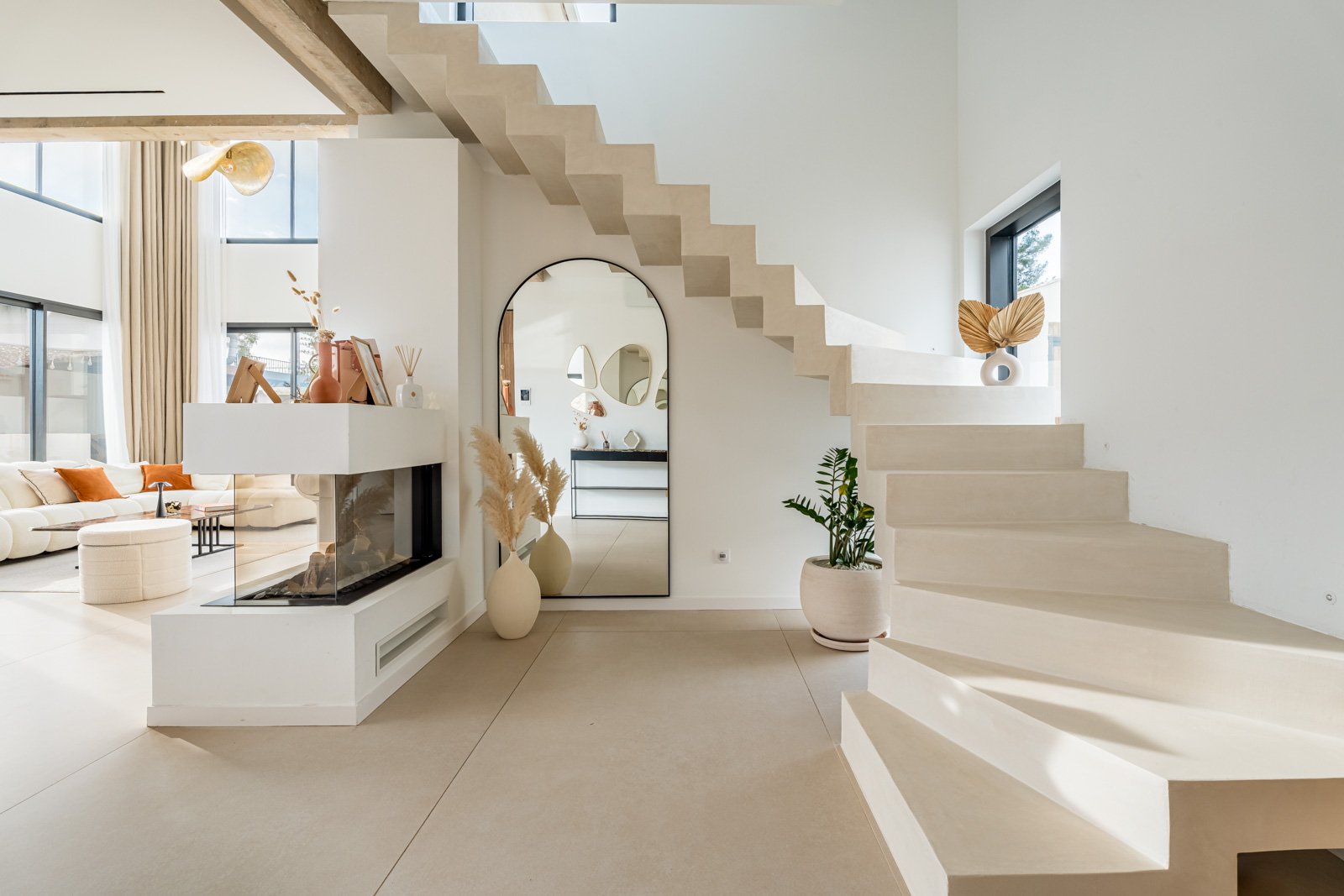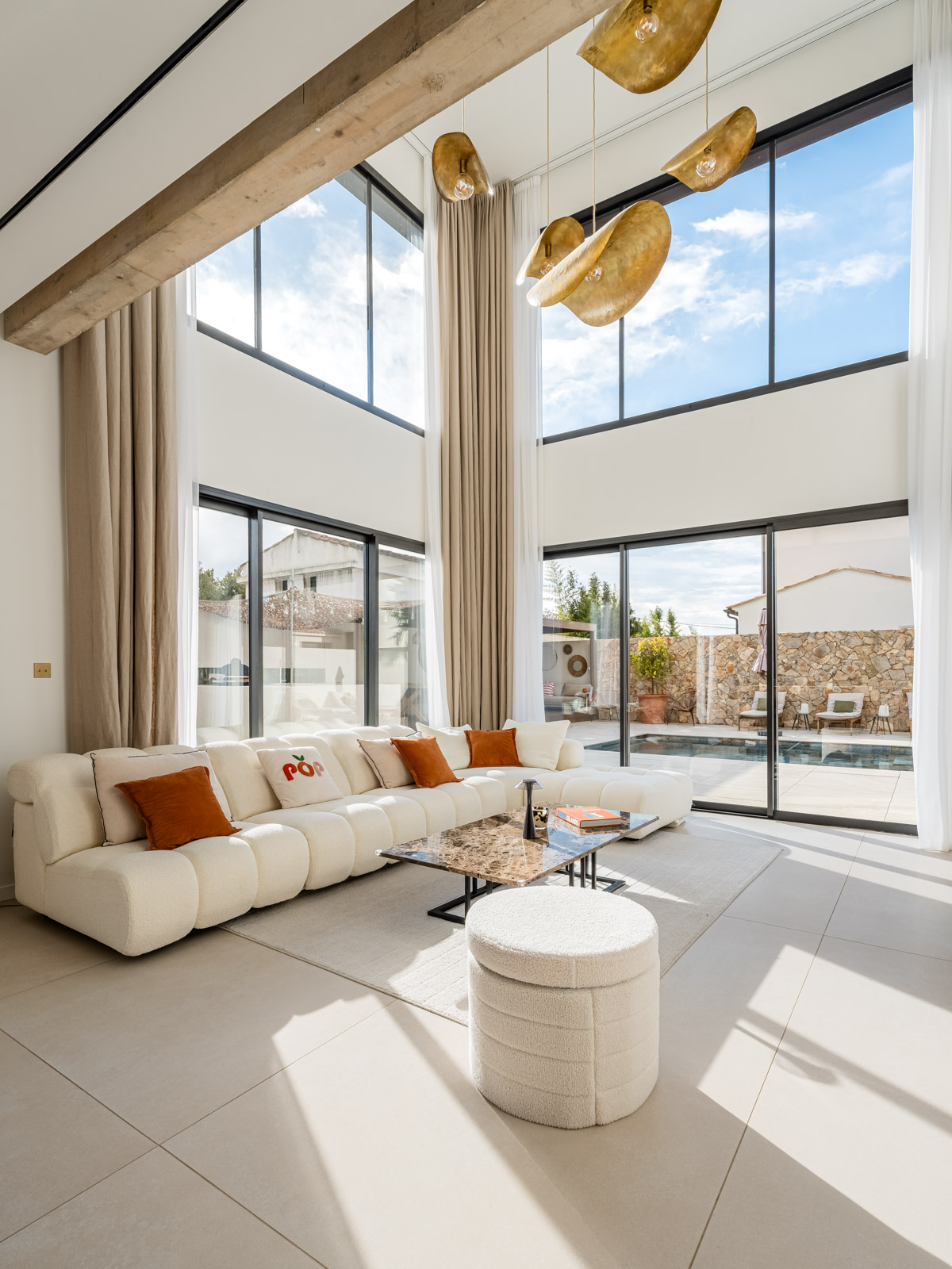 Un séjour cathédrale de six mètres, des matériaux nobles et un art de vivre tourné vers l’extérieur.