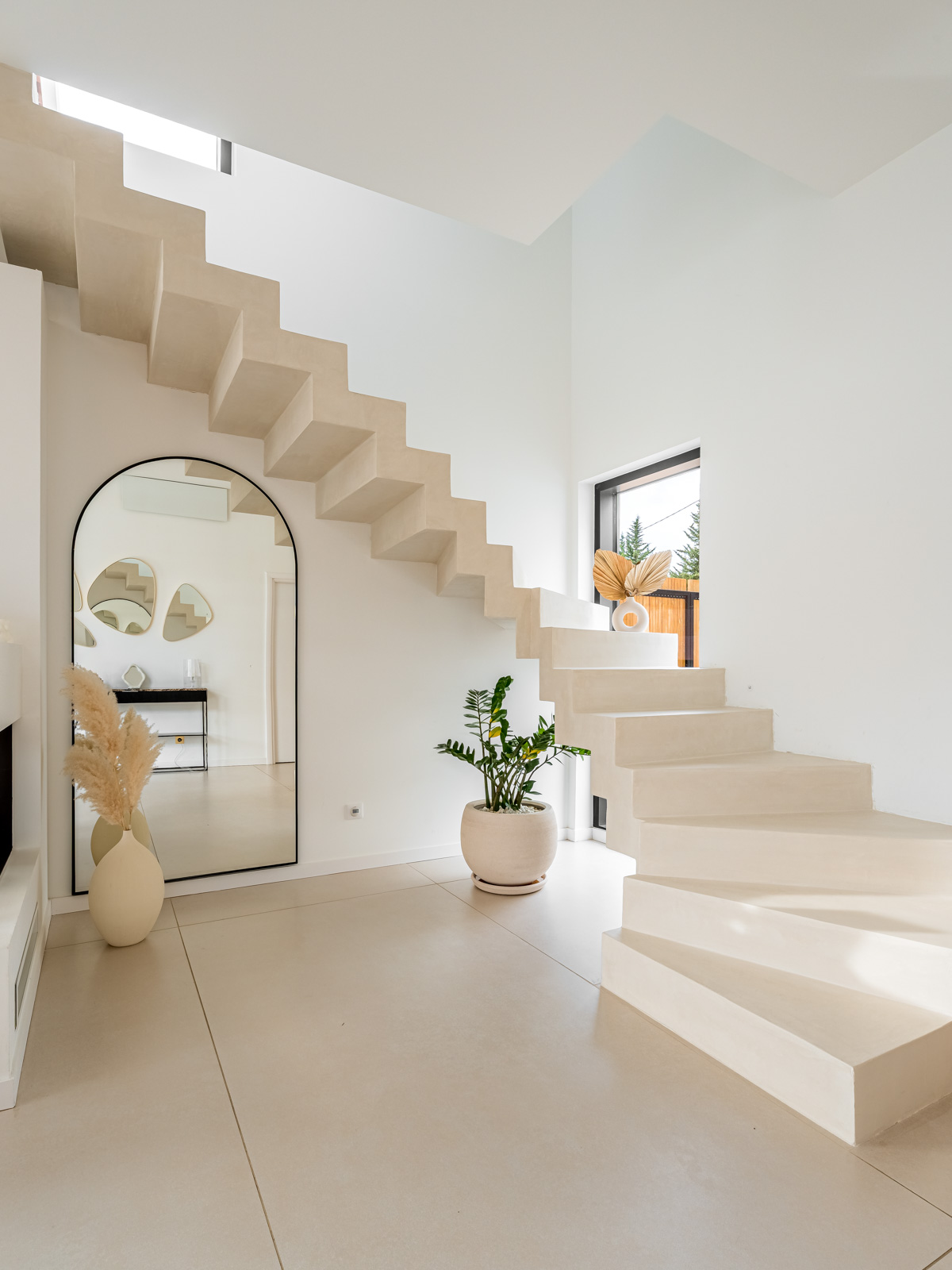 Dès l’entrée, la lumière s’impose comme élément central, glissant le long des volumes et se reflétant sur les matières nobles, créant une atmosphère à la fois douce et spectaculaire.
