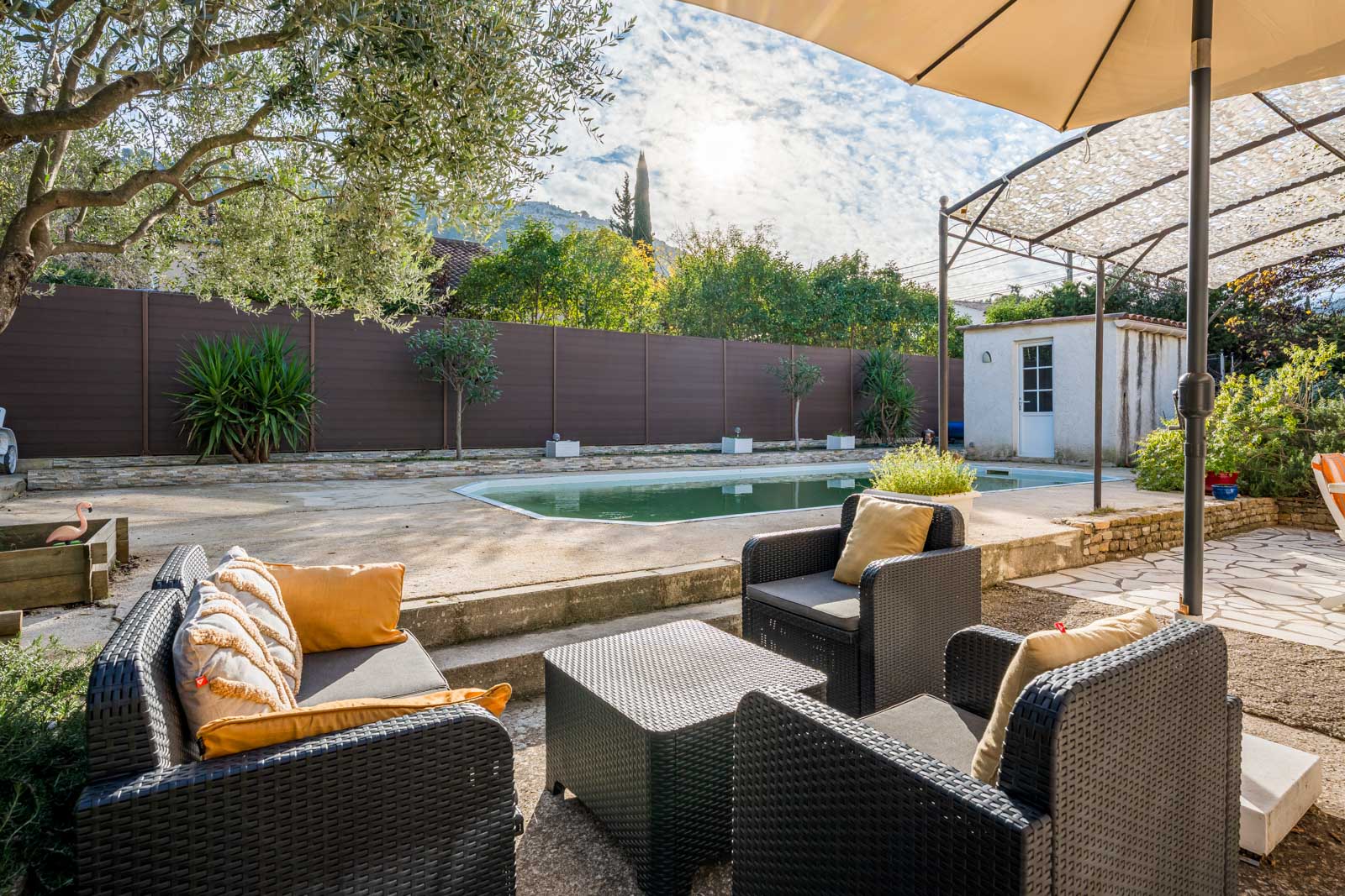 La maison se compose aujourd’hui de trois chambres, avec la possibilité d’en créer une quatrième selon vos besoins. Le séjour climatisé et convivial, s’ouvre sur un extérieur parfaitement pensé : piscine, terrasse et espace détente, idéal pour profiter des beaux jours.